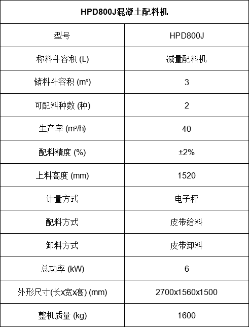 HPD800混凝土配料機與相應機型組合,可組成不同形式、不同規格的組合式混凝土攪拌站,800型小型配料機多用于HZS25攪拌站或小型建筑工地上。